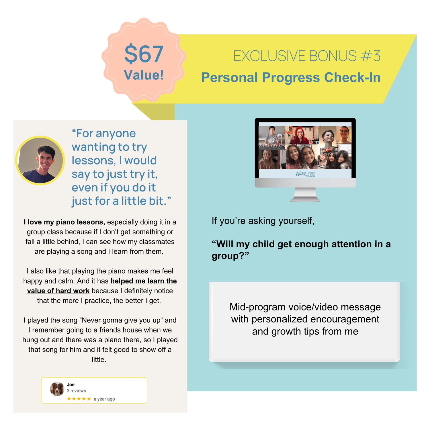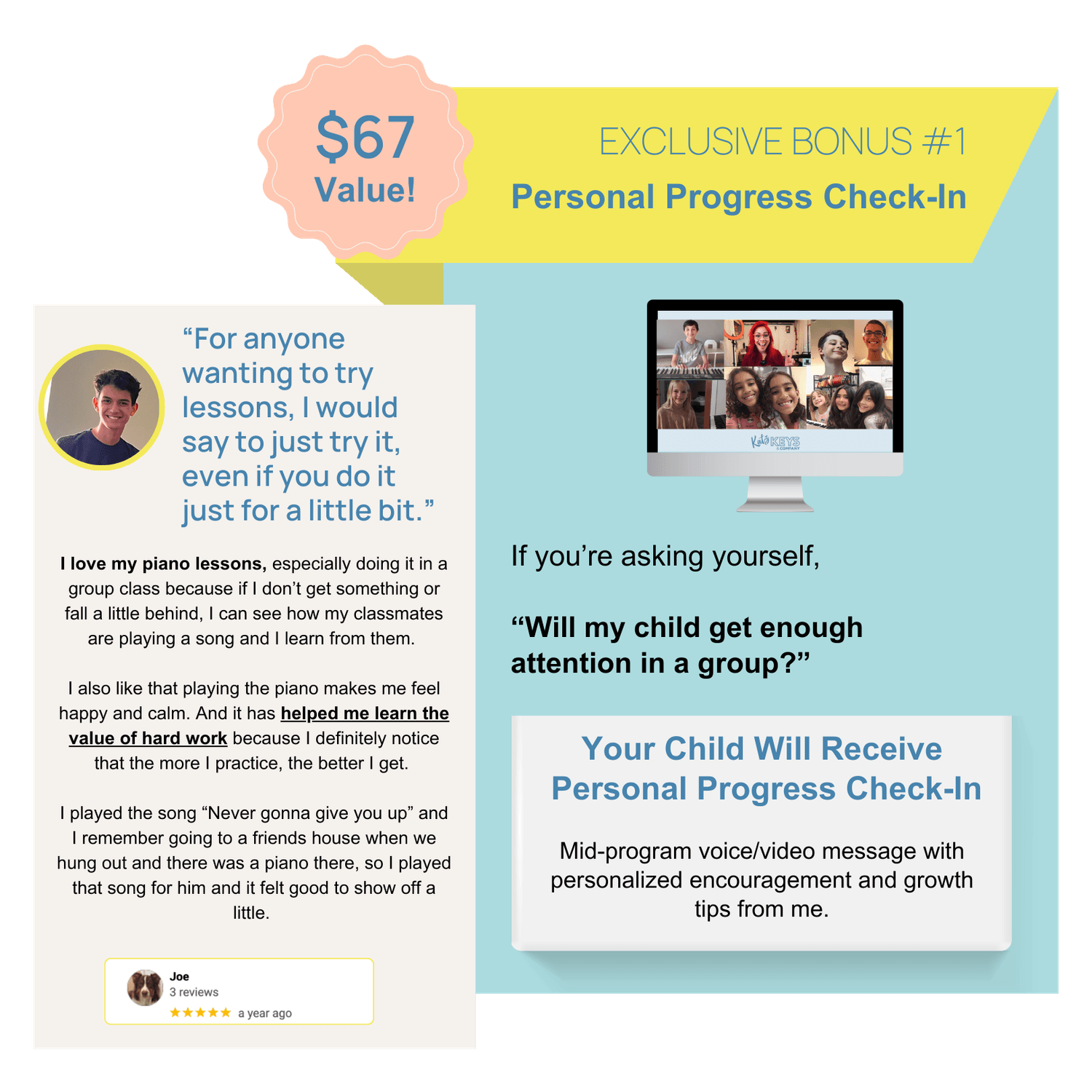 To make sure every child feels seen, you’ll also receive a mid-program personal progress check-in with feedback and encouragement from me.